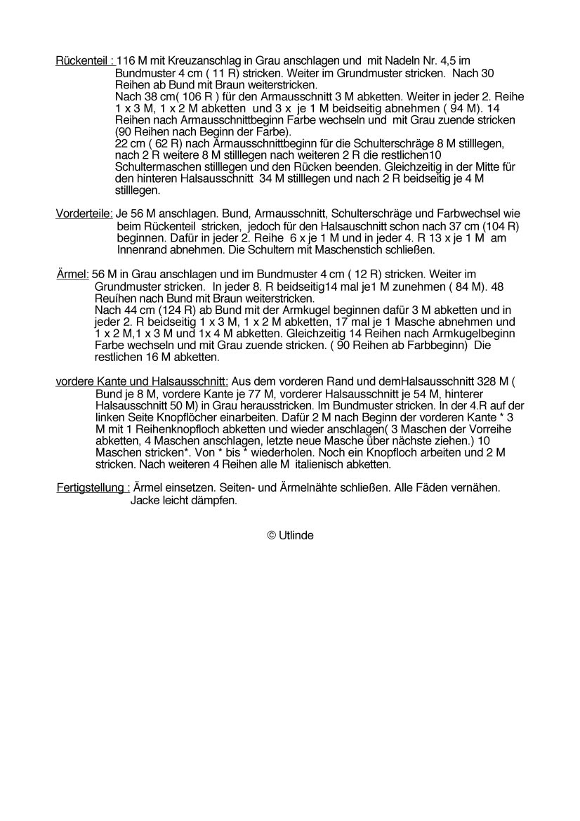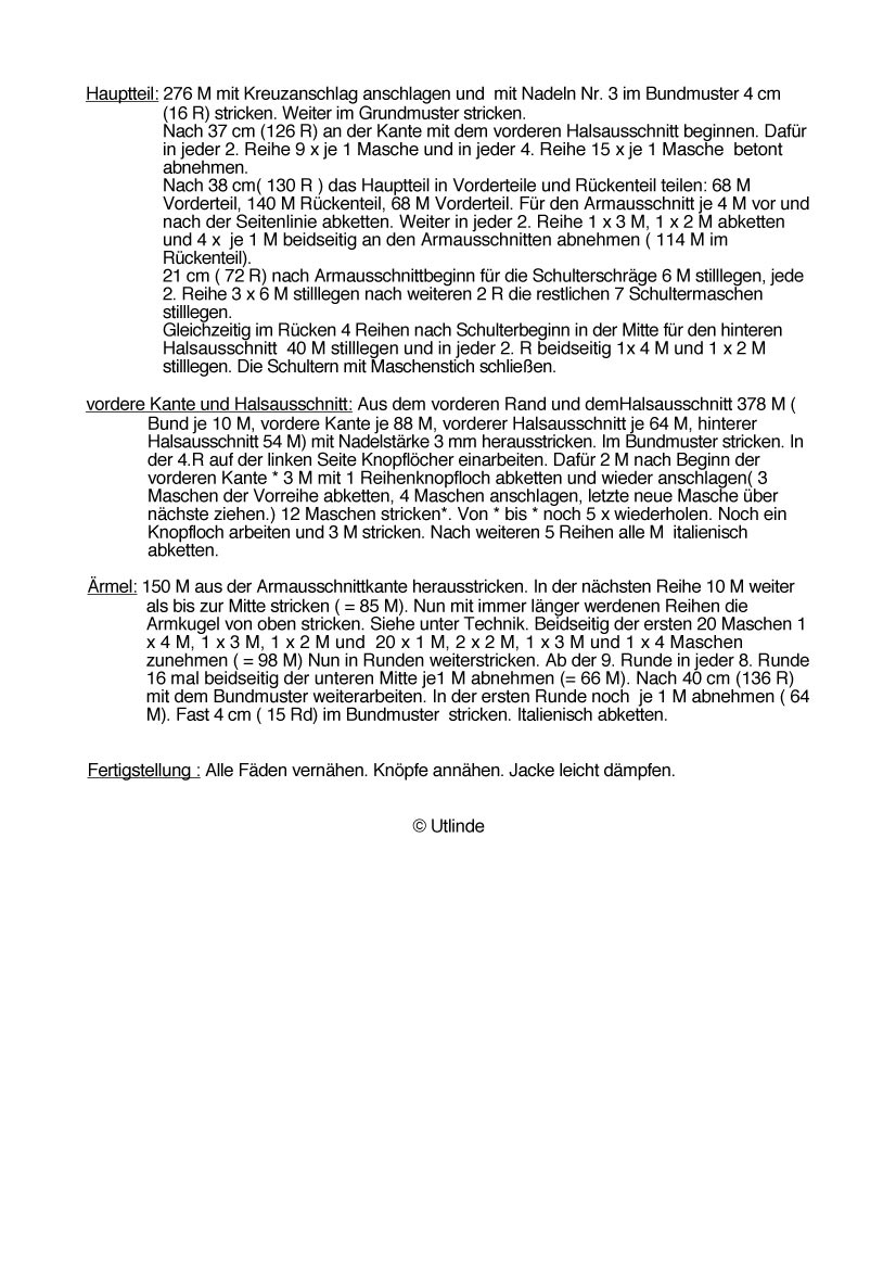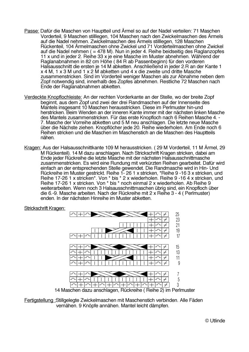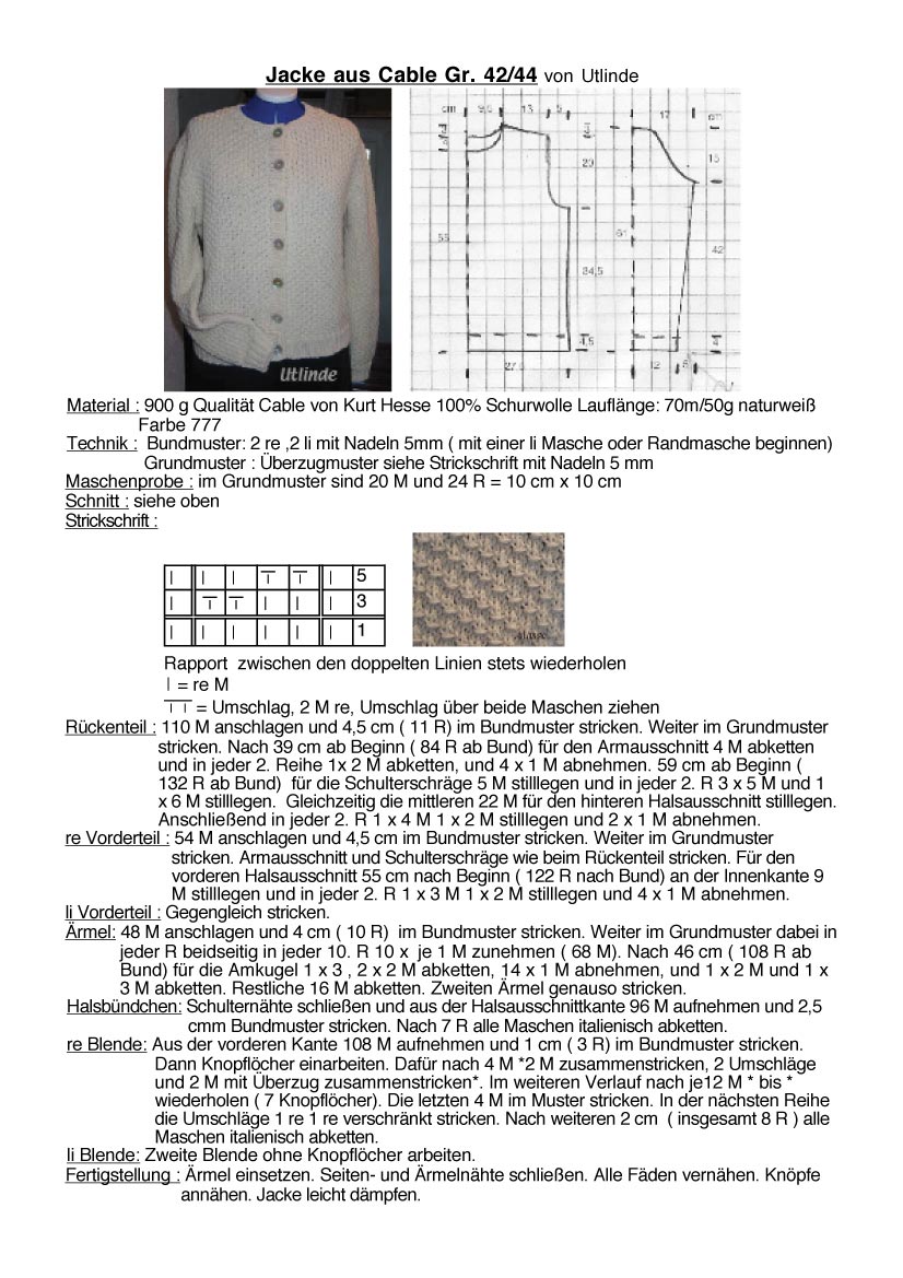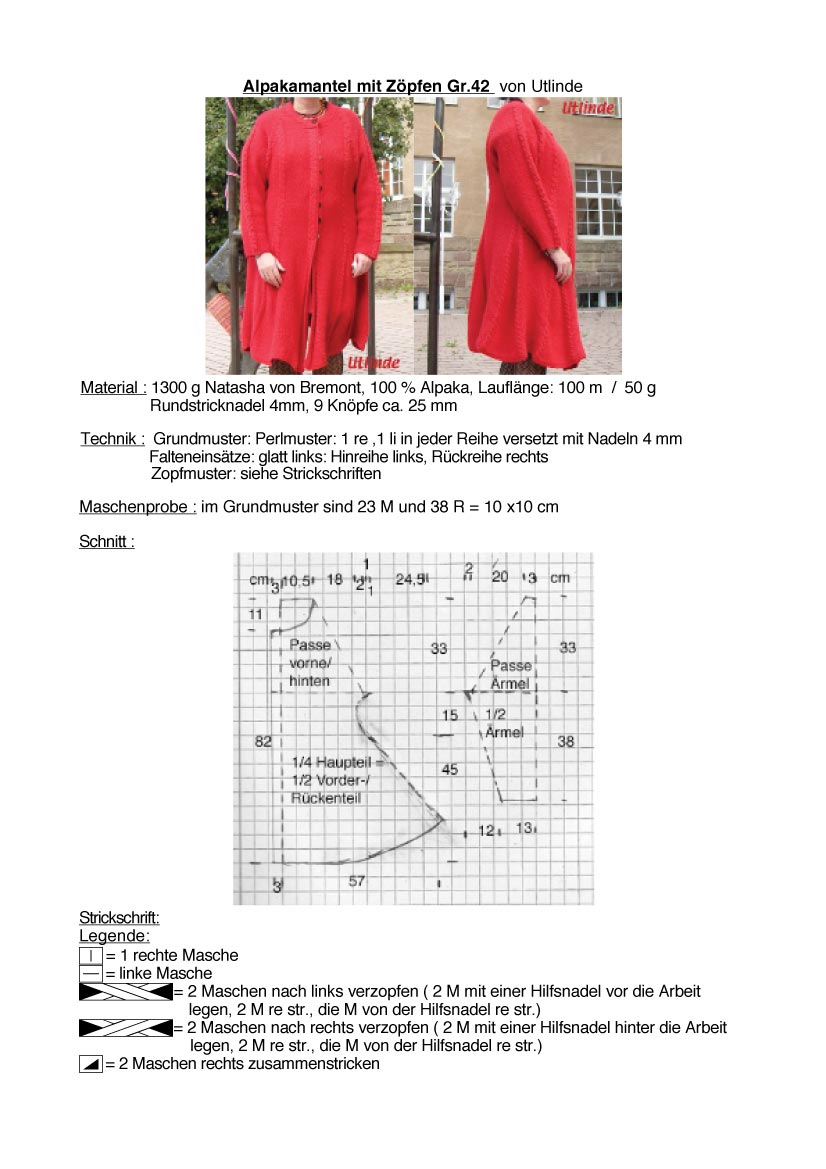 Jacke aus Cable Gr. 42/44:![]() Anleitung: ![]() | Alpakamantel mit Zöpfen Gr. 42![]() ![]() Anleitung: ![]() ![]() Seite 2 | Godetrock Filigran Gr 42/44 mit Angaben zur Größenänderung 3 € ![]() Ravelrykauf |