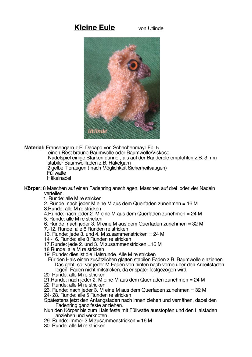 Kleine Eule:![]() Anleitung Seite 1: ![]() Seite 2 Seite 3 |