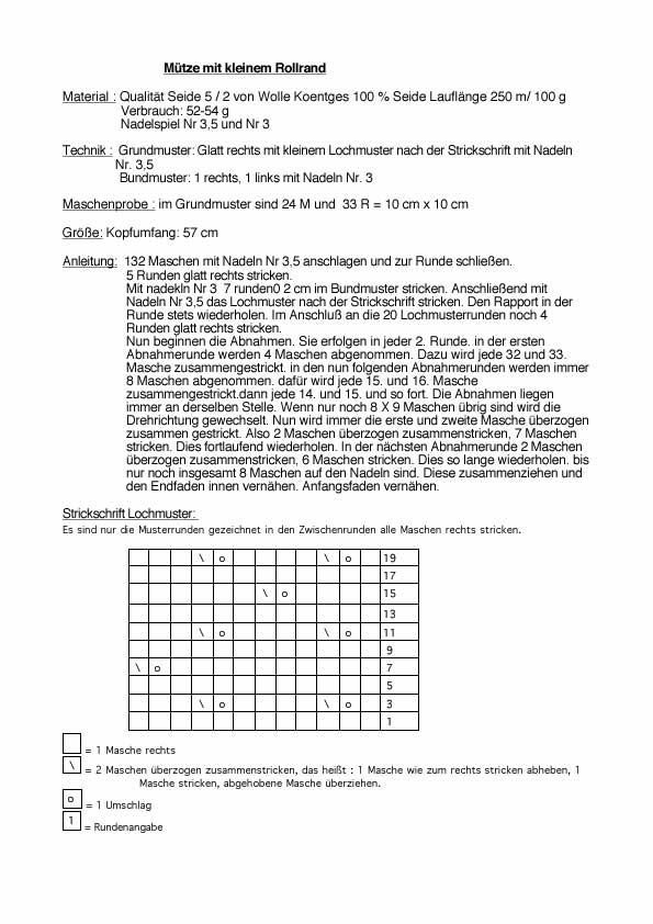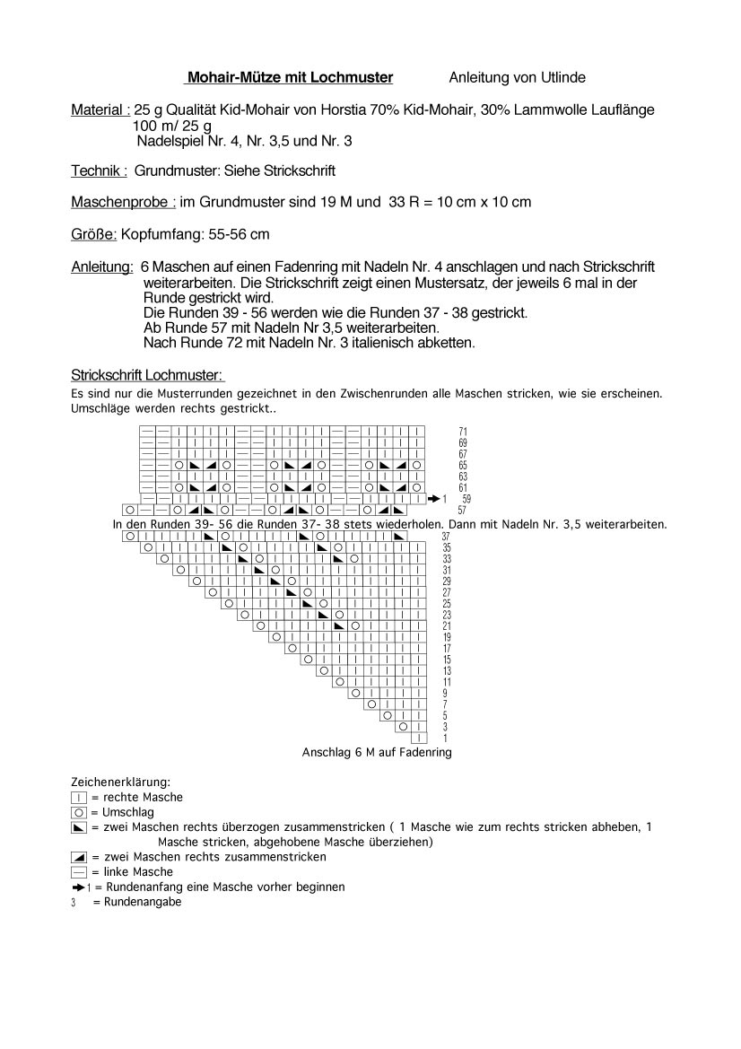 Mütze mit Rollrand:![]() Anleitung: ![]() | Mütze aus Mohair mit Lochmuster:![]() Anleitung: ![]() | Mütze mit Ohrenwärmern:![]() Anleitung als Ravelrydownload verfügbar. English translation as Ravelrydownload available. |