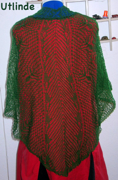 dreieckiges Schultertuch aufstrebende Ranken aus Kid-Mohair nach eigener Anleitung![]() | dreieckiges Schultertuch aufstrebende Ranken aus Urumerino nach eigener Anleitung![]() | Quadratisches Schultertuch liegende Ranken aus Uruwolle mit eigener Anleitung![]() |
